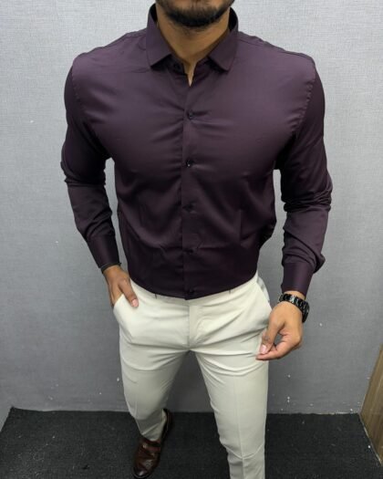 Purple Linen Shirt & White Linen Relaxed Fit Pant