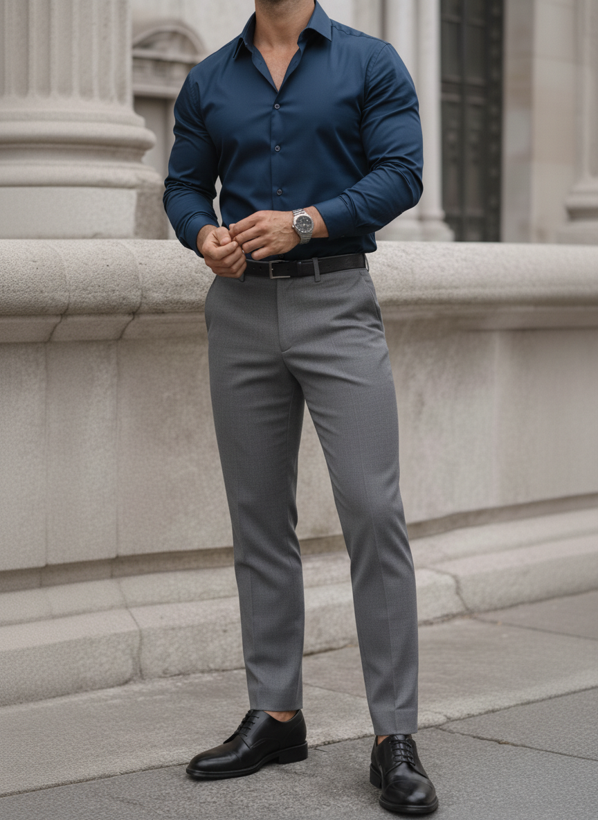 Party Wear Shirt Indigo and 4 Way Lycra Pant