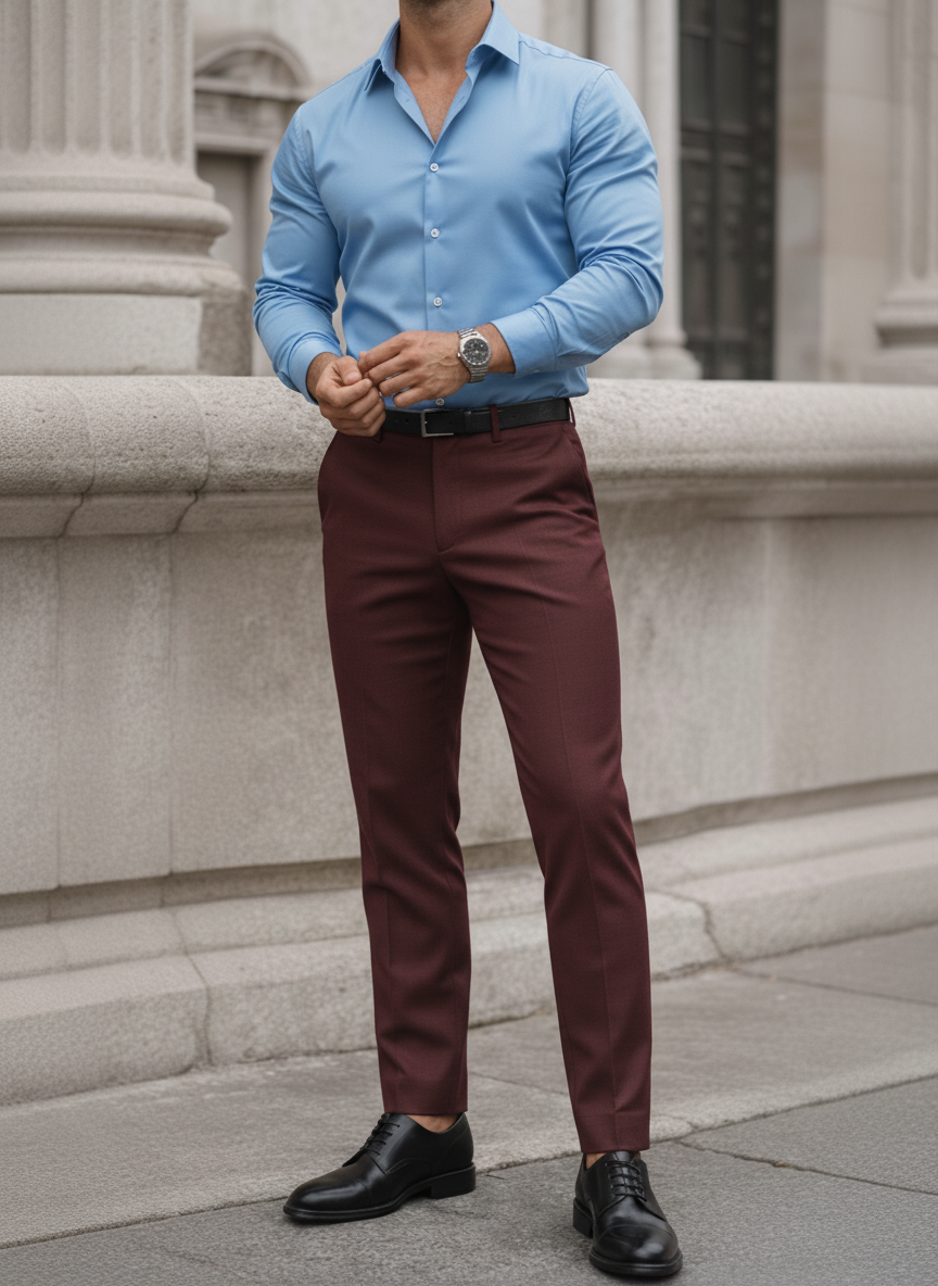 Party Wear Shirt Dark Purple and 4 Way Lycra Pant