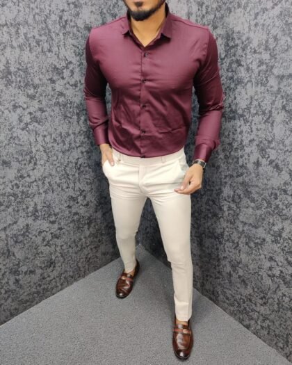 Burgundy Shirt And White Trouser