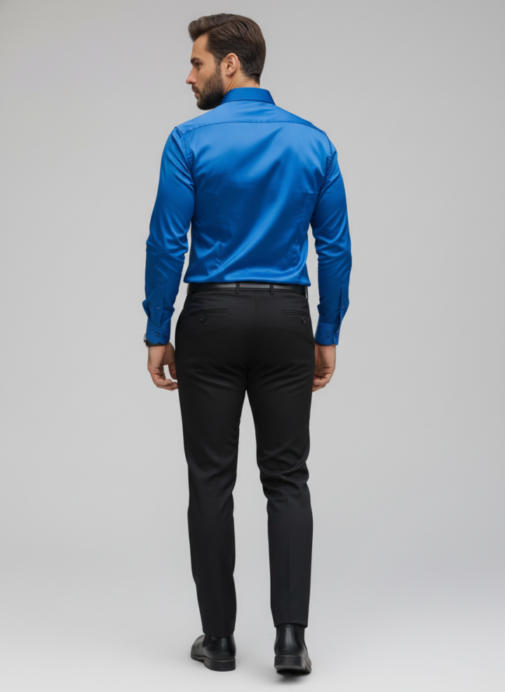 The Blue Shirt and Black Pant Combo is perfect for those who seek versatility. Dressing up or down is effortless with this set; pair it with formal shoes for a sharp, professional look, or opt for sneakers to create a more casual vibe. Accessorize with a belt and wristwatch for a modern finish, or add layers with a blazer to elevate your outfit further. This combo adapts seamlessly to any event, giving you diverse options to express your personal style.