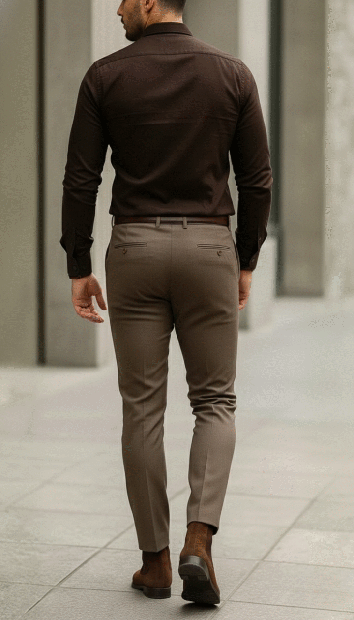 This Dark Brown Shirt paired with Light Brown Trouser offers a simple yet striking combination, catering to both smart casual and professional environments. The dark shade of the shirt complements the lighter tone of the trouser, creating a balanced look suitable for any occasion. The versatile shades make these pieces easy to pair with a wide range of accessories, allowing you to customize your outfit for either daytime outings or evening events.