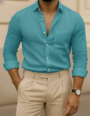 The sky blue color of this shirt embodies a refreshing and sophisticated vibe that pairs seamlessly with a variety of outfits. Style it with a pair of chinos for a smart-casual look or jeans for laid-back flair. Add a blazer for a polished evening ensemble. With its classic yet contemporary aesthetic, this shirt is a flexible addition to your wardrobe that meets your styling needs without compromising comfort.